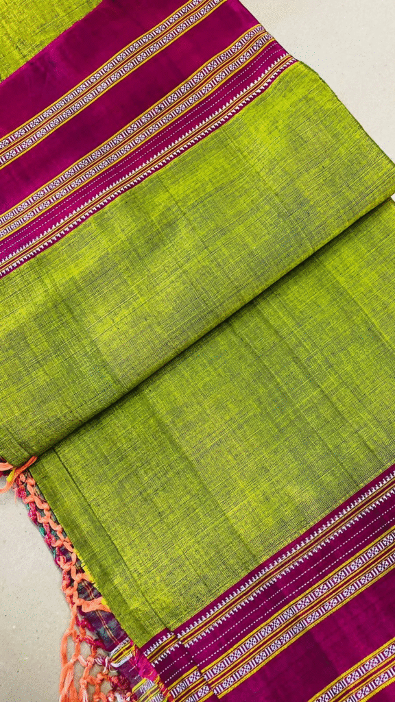 - Borders: Ilkal sarees feature a distinct border design called “chikki,” “gomi,” “jari,” or “top-tenni,” which are traditional patterns specific to the region.