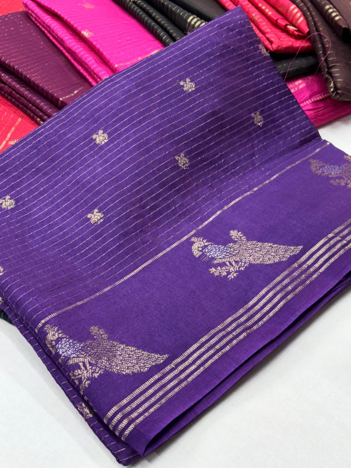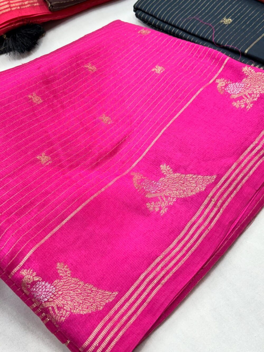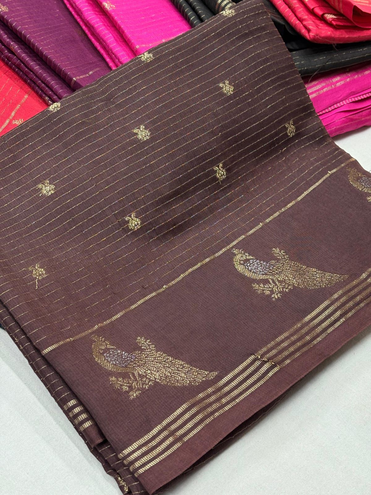 Tusar silk sarees with peacock border
